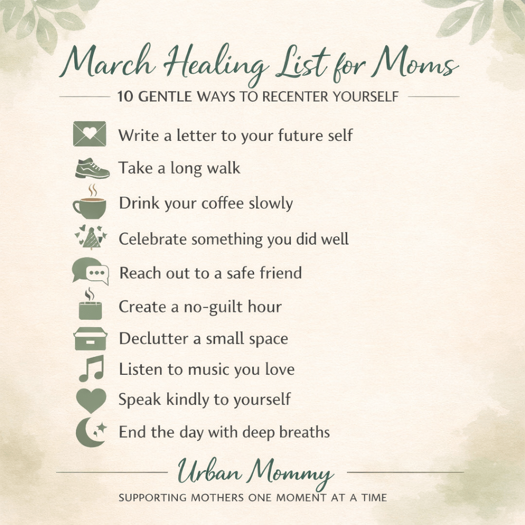 This month, Urban Mommy invites you to try a March Healing List — ten gentle practices that nurture your heart, mind, and spirit.